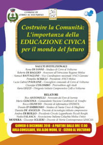 CERRO AL VOLTURNO – Una piccola grande rivoluzione che parte dalle amministrazioni locali, questo rappresenta il percorso che prenderà avvio con l’evento “Costruire la Comunità: l’importanza dell’educazione civica per il mondo del futuro”.