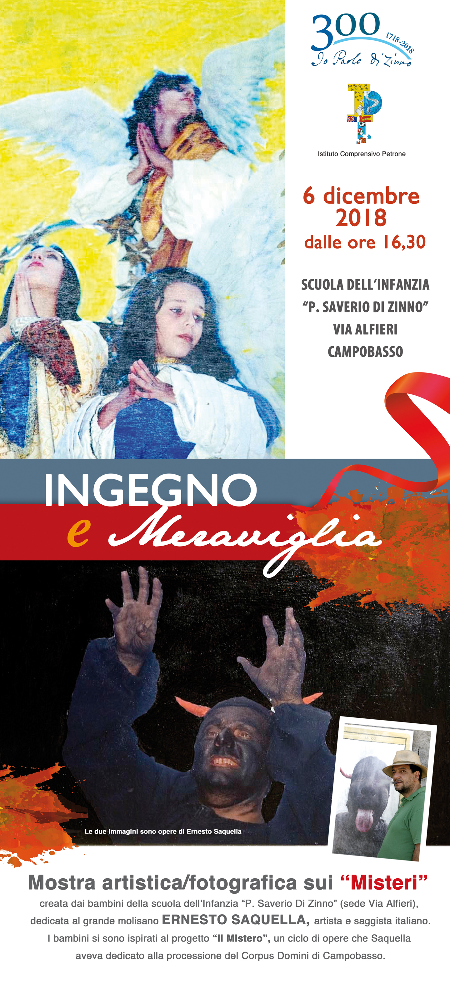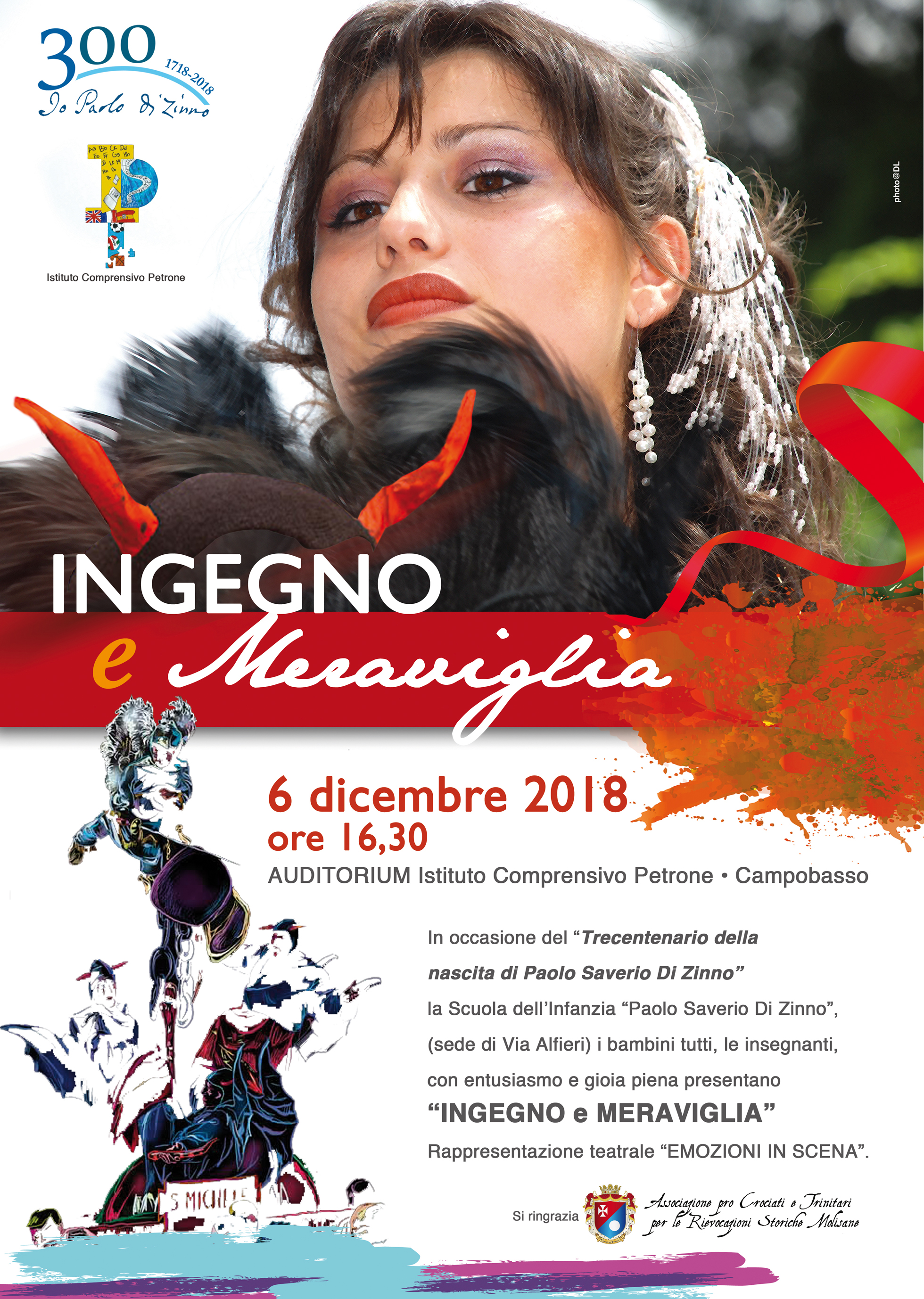 L’iniziativa “Ingegno e Meraviglia” si terrà oggi, giovedì 6 dicembre, alle ore 16.30 presso l’Auditorium I.C. Petrone di via Alfieri, alla presenza dell’arcivescovo di Campobasso-Bojano S.E. mons. Giancarlo Bregantini e del Comitato pro Di Zinno.