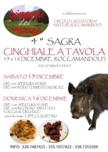 ROCCAMANDOLFI – Tutto pronto per la IV Sagra del cinghiale a tavola, organizzata dall’Associazione “Orizzonti del Matese Roccamandolfi” in collaborazione con “Il Circolo Cacciatori del Matese Roccamandolfi”.