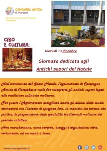 Giovedì 13 dicembre, dalle 8.30 alle 15, protagonista sarà la tradizione culinaria molisana del periodo delle festività natalizie.