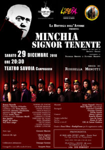 TEATRO – Sabato 29 dicembre 2018 alle ore 20.30 la Compagnia Teatrale “La Bottega dell’Attore” porterà nuovamente in scena, sul palco del Teatro Savoia di Campobasso, lo spettacolo “Minchia Signor Tenente“, sotto la regia di Rossella Menotti.