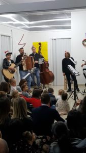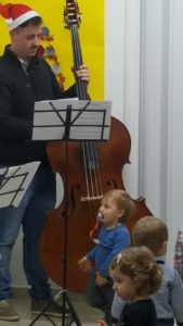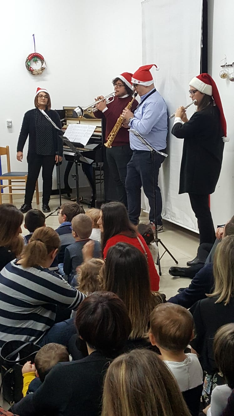 Prima lezione concerto per i bambini dell’asilo e i loro genitori. Con la direzione artistica del M° e pianista Wanda Petti, i maestri, Angelo Botticella al Contrabbasso, Damiano Campanelli al Sax, Carmen Di Febo al Flauto, Erika Petti alla Chitarra, Manuel Petti alla Fisarmonica e arrangiamenti, Giulio Travaglini alla Tromba, hanno regalato le più famose note di Natale promuovendo il contatto con i bambini, che sono entrati nello spazio della musica. La risposta dei piccolissimi alla musica d’orchestra è stata rispettosa e con entusiasmo partecipata. Un vero successo!