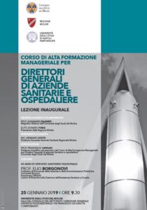 Prende il via domani all’UniMol, per le professionalità molisane, province limitrofe e del territorio nazionale il corso di formazione che permette l’acquisizione dell’attestato necessario ai fini della domanda di iscrizione nell’Elenco nazionale dei Direttori generali. L’apertura del Corso inizierà con gli indirizzi augurali e di benvenuto del Rettore, Prof. Gianmaria Palmieri e del Presidente della Regione Molise, Dott. Donato Toma. A seguire un cenno di saluto del Direttore Generale dell’ASRe Molise, Ing. Gennaro Sosto e l’introduzione del Direttore scientifico ed esecutivo del Corso di Alta Formazione Manageriale, Prof. Francesco Capalbo, Ordinario di Economia Aziendale all’UniMol.