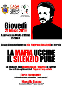 SCUOLA – Due giornate di impegno sociale all’Isis Majorana-Fascitelli di Isernia, per due eventi che avranno al centro la lotta alla criminalità organizzata: il 20 e 21 marzo sono stati messi in calendario dagli studenti delle superiori due incontri con Paolo De Chiara e gli amici storici di Peppino Impastato.