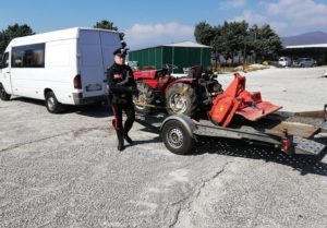 Da un primo controllo, si aveva modo di identificare due uomini e una donna che viaggiavano nel furgone. I Carabinieri insospettiti dall’atteggiamento poco collaborativo, decidevano di approfondire i controlli, anche sul trattore che trasportavano ed altro materiale rinvenuto all’interno del mezzo. Chieste spiegazione sul materiale rinvenuto e sul mezzo agricolo, i fermati esibivano fatture di acquisto che destavano immediatamente sospetto all’occhio incuriosito degli operanti che decidevano di accompagnare i soggetti in caserma per approfondimenti. Successive e dettagliate indagini per risalire alla provenienza del materiale permettevano di acclarare che il trattore privo di targa era stato asportato ad un privato nella zona del napoletano.