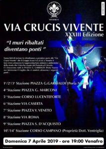 TRADIZIONI – Torna a Venafro domenica 7 Aprile 2019 la Via Crucis Vivente. Quest’anno ricorre la XXXIII edizione dell’evento organizzato dal gruppo scout Agesci Venafro 4. La partenza della rappresentazione avrà luogo da piazza Porta Nuova alle 19.