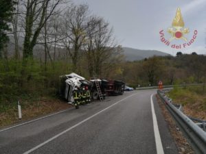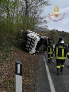 Per fortuna non ci sono state conseguenze gravi. Ferito l’autista del mezzo pesante. La Statale 158 è rimasta bloccata. Il traffico interdetto dal km 27,750 al km 38,000, viene deviato lungo la strada statale SS 627 ‘Della Vandra’.