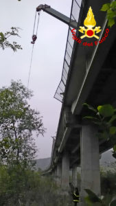 La squadra operativa, personale specializzato nel soccorso fluviale (SAF) dei Vigili del Fuoco del Comando Provinciale di Campobasso e del distaccamento di Termoli sono intervenuti al Km 49 della SS647 dove un autocarro, dopo aver divelto parte di guardrail, è precipitato giù dal ponte che stava attraversando.