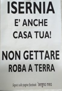 ISERNIA – “Isernia è anche casa tua! Non gettare roba a terra”: è questo il volantino che da alcuni giorni campeggia nelle vetrine delle attività commerciali del capoluogo pentro.