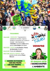 SCIOPERO GLOBALE PER IL CLIMA – Sull’esempio di Greta Thumberg, gli studenti dell’ISISS “A. Giordano” di Venafro, hanno deciso di scendere in campo insieme a Comune di Venafro, Mamme per la salute, Isde Molise, Città Nuova e Fondazione “Mario Lepore”, per lanciare un messaggio forte ai responsabili della politica e dell’economia, partendo dal locale, per arrivare al globale.