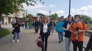 In testa alla manifestazione il dirigente scolastico Carmela Concilio e i docenti dell’Isiss. In mezzo e in coda le “Mamme per la salute e l’ambiente” oltre ai rappresentanti della Fondazione Mario Lepore, al presidente dell’Isde Molise, Bartolomeo Terzano, e Città Nuova che hanno aderito alla mobilitazione e partecipato al convegno, che si è svolto prima del corteo, sul tema “Inquinamento e cambiamenti climatici: esigenze, problemi e prospettive per la piana di Venafro“.