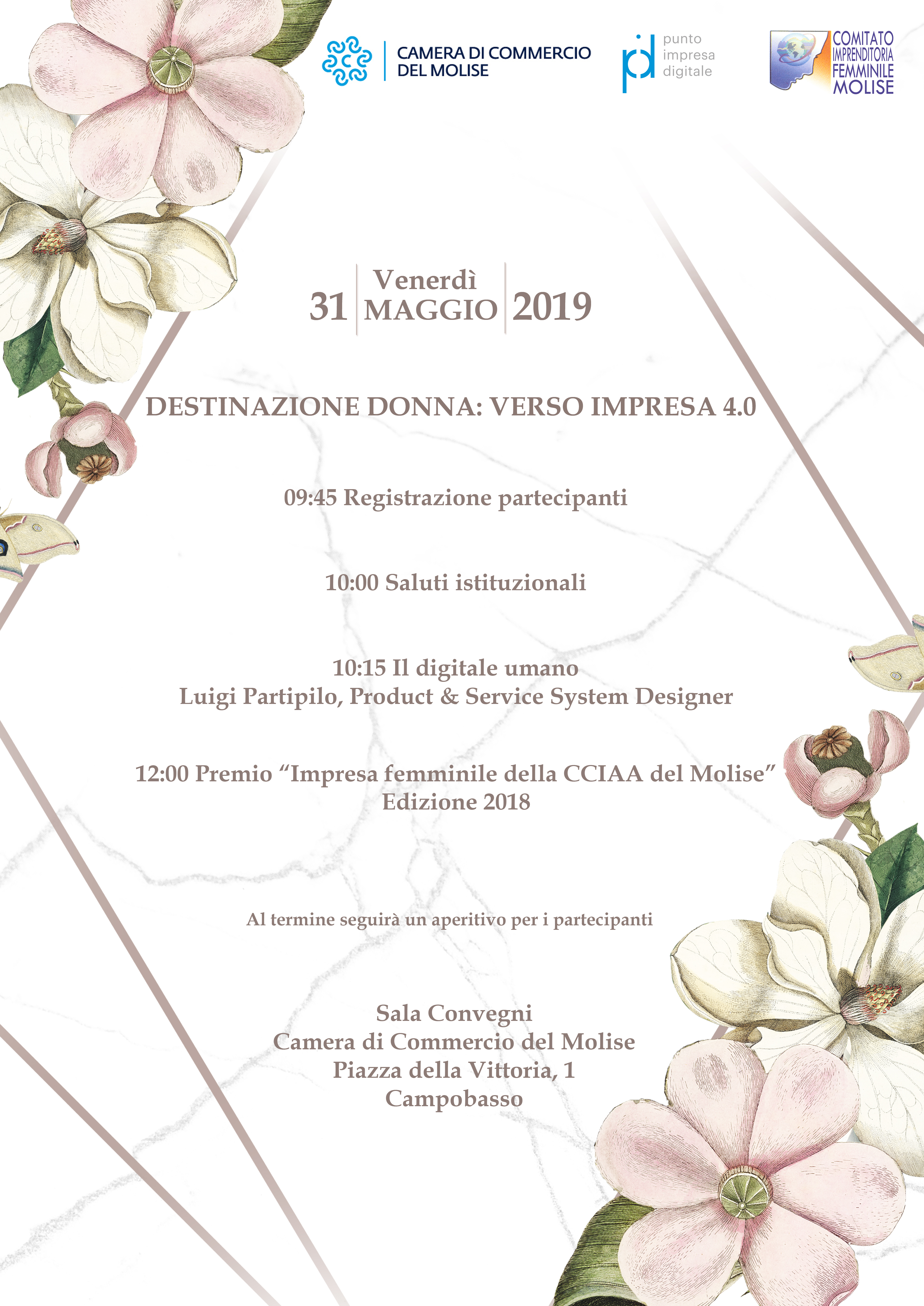 CAMPOBASSO – Destinazione Donna verso Impresa 4.0“, 31 maggio 2019: evento formativo e Premio Impresa Femminile della Camera di Commercio del Molise.
