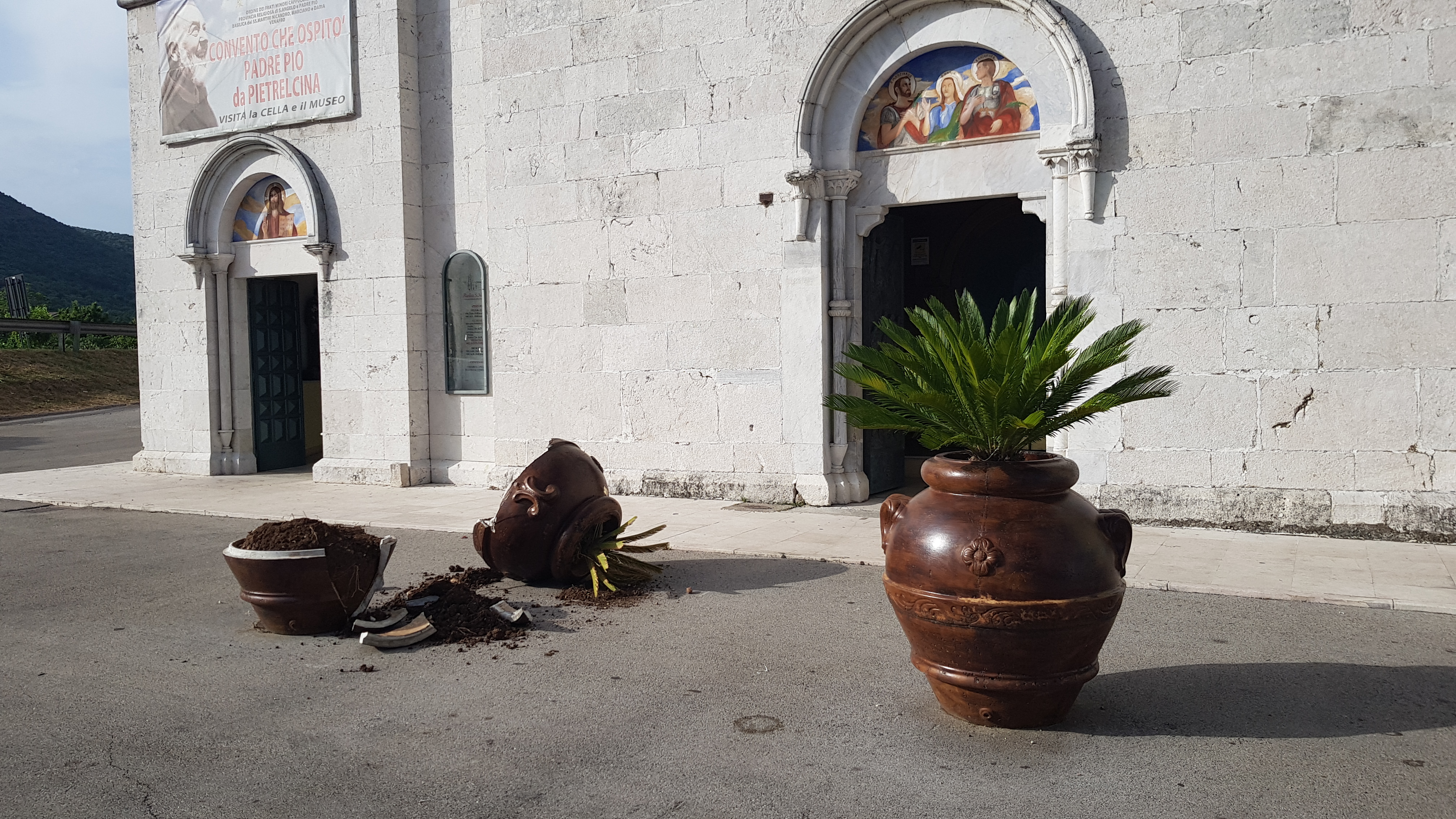 CRONACA – Ancora una volta Venafro è stata teatro di atti vandalici. Il bersaglio è sempre una delle grandi anfore posta dinanzi l’ingresso del convento di San Nicandro.