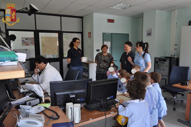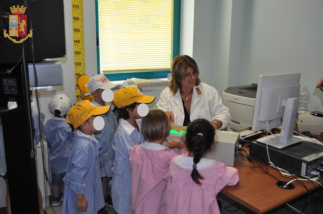 Così, mercoledì 26 giugno 12 bambini, di età compresa tra i 3 e i 5 anni, hanno potuto vedere i poliziotti al lavoro e condividere con loro le attività svolte all’interno dei singoli Uffici della Questura, accompagnati da un tutor per ciascun Ufficio che ha illustrato compiti e competenze.