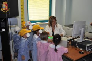 Particolarmente interessante e divertente è stata la visita al Gabinetto Provinciale di Polizia Scientifica, dove è stato spiegato ai bimbi come si interviene sulla scena di un crimine, ed alla Sezione Polizia Stradale, dove hanno potuto vivere l’esperienza emozionante di provare “un giro” sulle auto della Polizia.