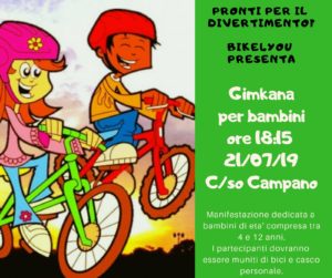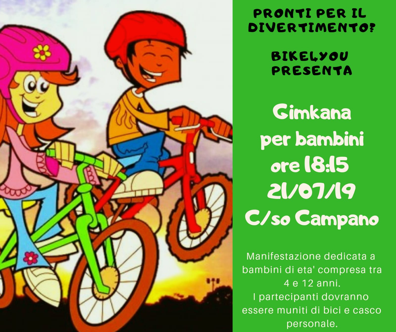 Si parte nel pomeriggio di domenica dalle ore 18.15 con la divertente gimkana per bambini di età compresa tra i 4 e i 12 anni. A loro viene richiesto di portare la bici e il casco, al resto ci pensa “Bike4you“, negozio specializzato di biciclette.
