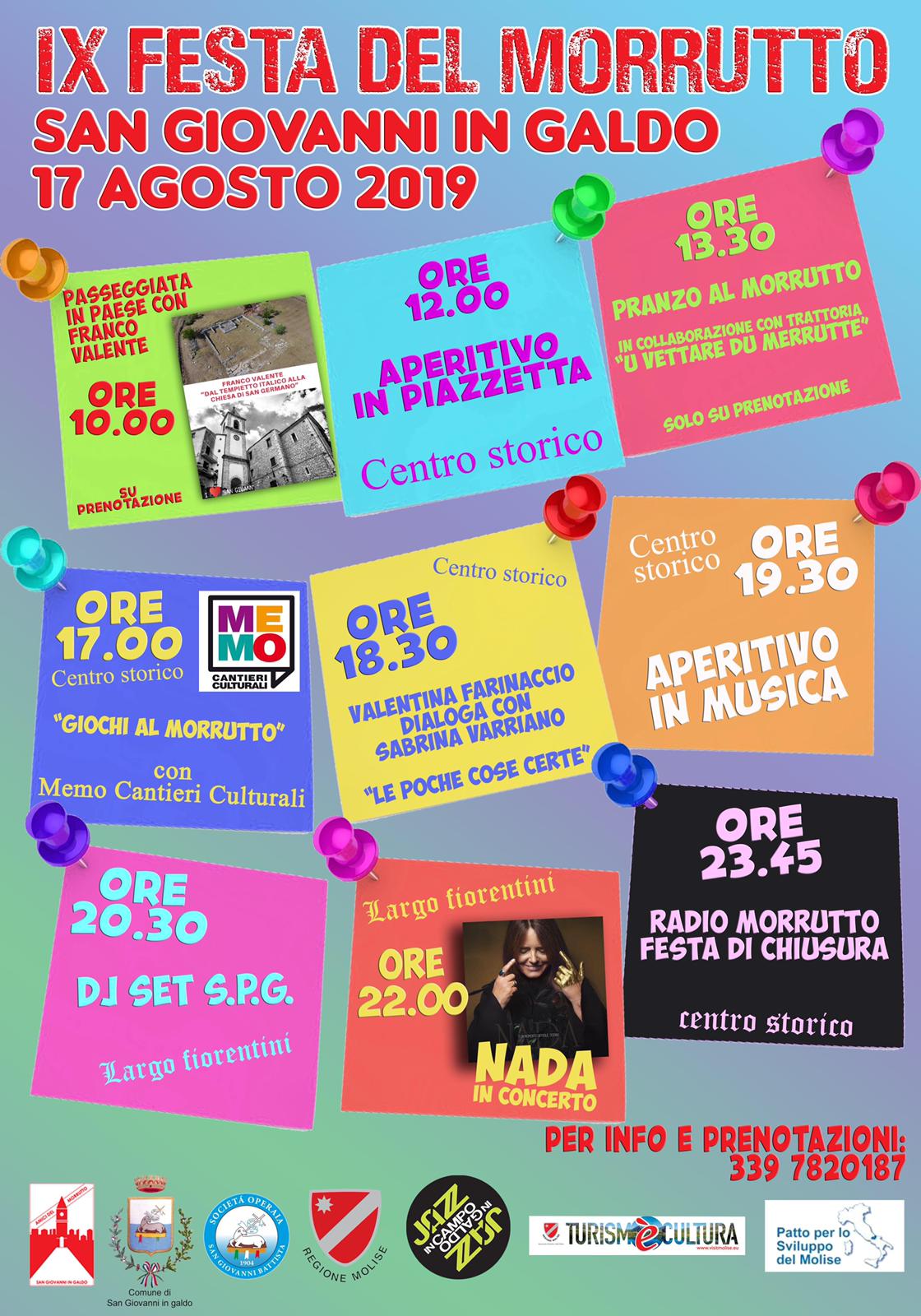 La giornata è organizzata come sempre dall’associazione Amici del Morrutto con la collaborazione del Comune e della Società Operaia di San Giovanni in Galdo e il sostegno della Regione Molise.