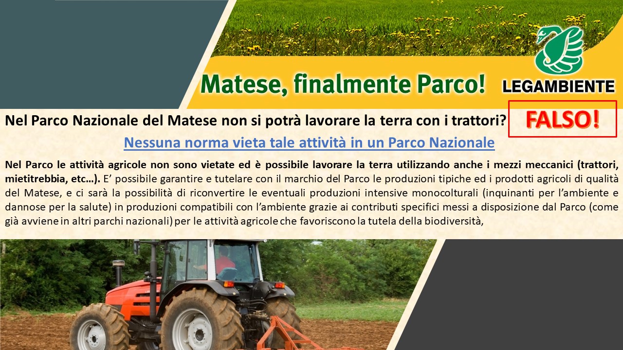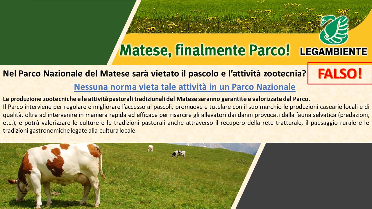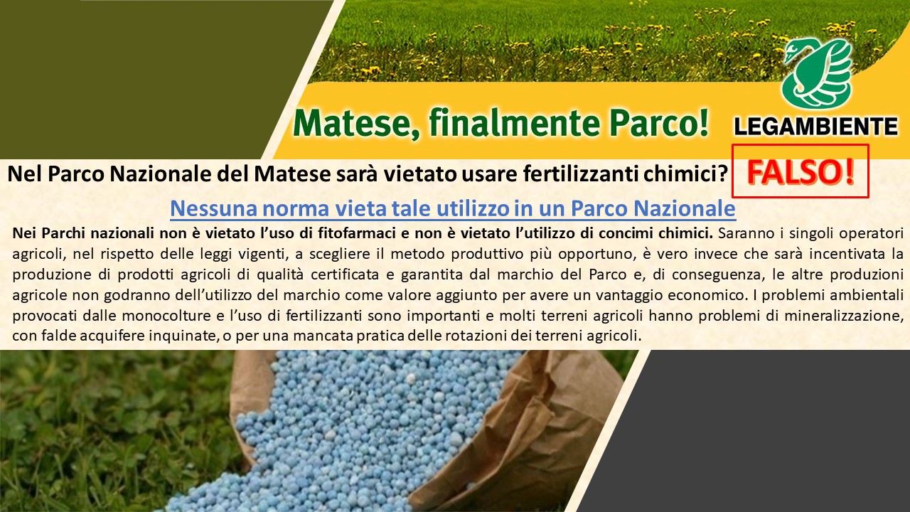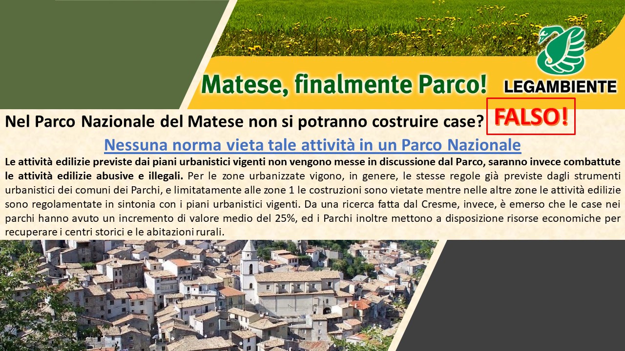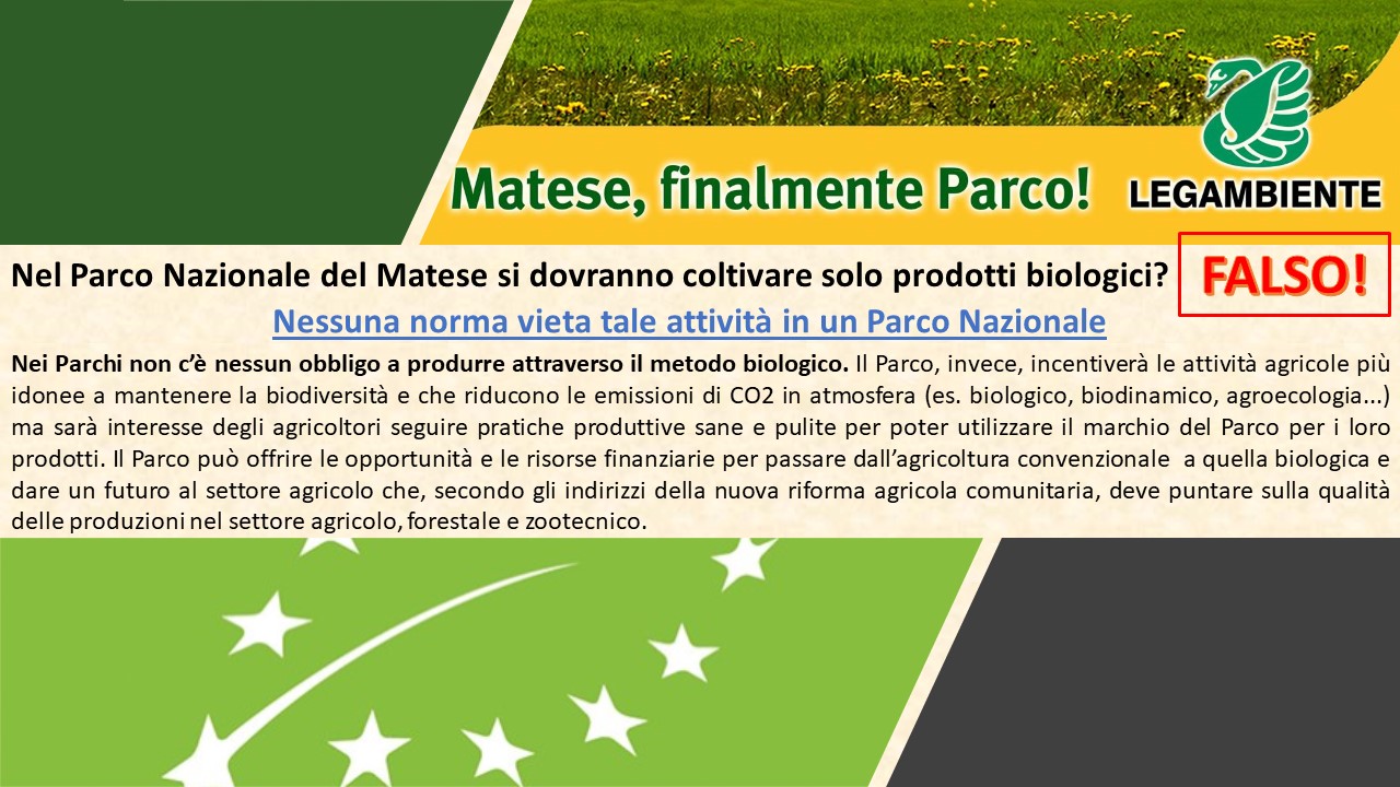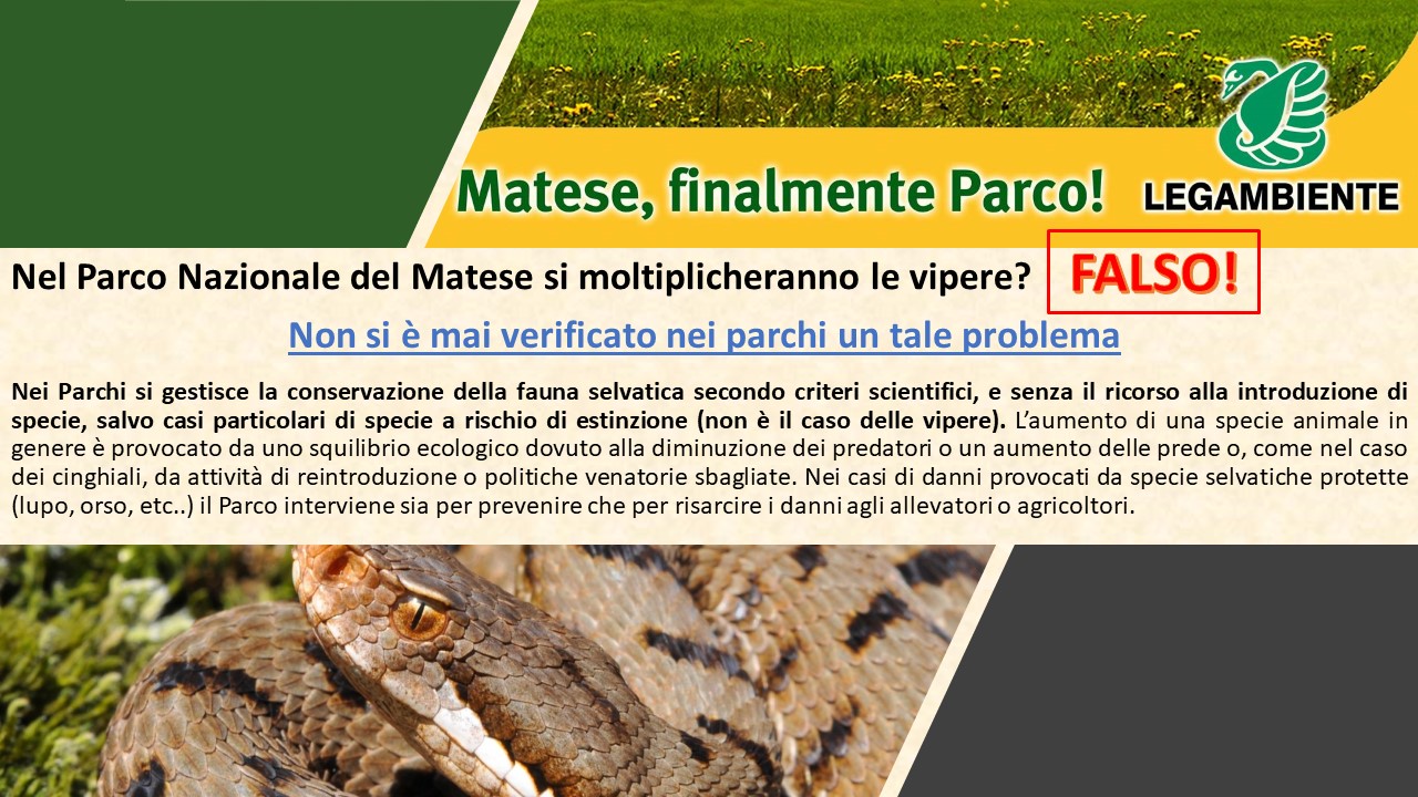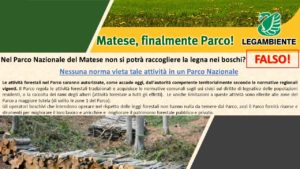 Per tutte queste ragioni e per fare chiarezza Legambiente ha deciso di lanciare la campagna #bastafake che andrà a chiarire i dubbi che i cittadini e gli operatori economici legittimamente hanno espresso. Una campagna semplice, realizzata tramite la condivisione sui social network di infografiche a tema contenenti le domande che spesso vengono poste riguardo al Parco Nazionale del Matese e la riposta alle stesse. L’obiettivo della campagna è quello di chiarire tutti i dubbi, che sono sempre legittimi, ma senza lasciare spazio a chi, per interessi particolari e illegittimi, crede di alimentare false notizie e creare confusione per bloccare l’unica opportunità di sviluppo sostenibile e duraturo per il Matese, una delle tante aree interne che, come ha certificato il recente rapporto dello Svimez, può evitare l’oblio se attraverso il Parco punta su un progetto di sviluppo legato alle attività agricole forestali e zootecniche di qualità e in grado di rilanciare nel comprensorio matesino un turismo attivo e sostenibile e la valorizzazione delle produzioni locali.