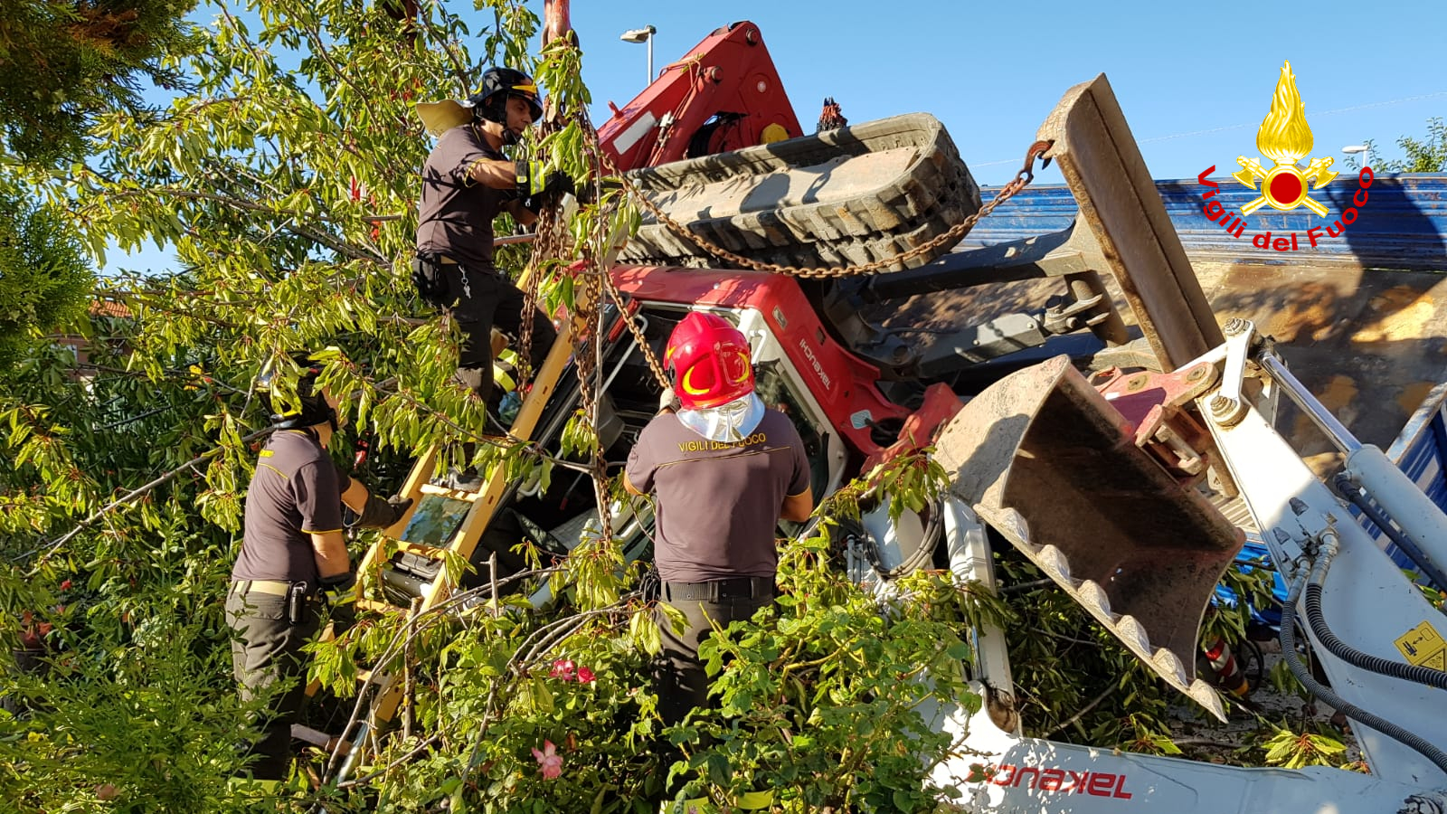 CAMPOBASSO – Un autocarro con su una mini pala meccanica si è ribaltato questa mattina in via Lazio a Campobasso.