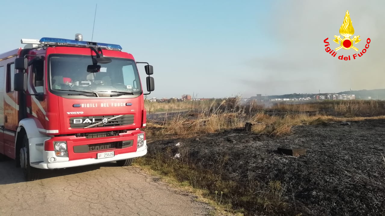CAMPOMARINO LIDO – Un vasto incendio di sterpaglie e canneto si è sviluppato nel pomeriggio di oggi a Campomarino Lido nei pressi dell’area del depuratore e di un vicino maneggio di cavalli.