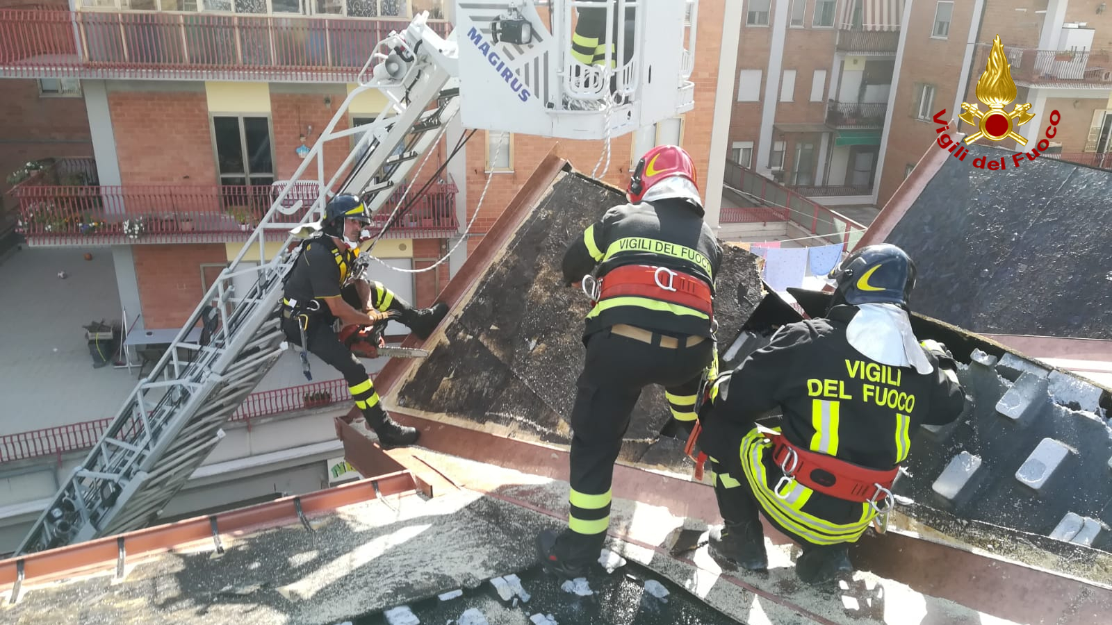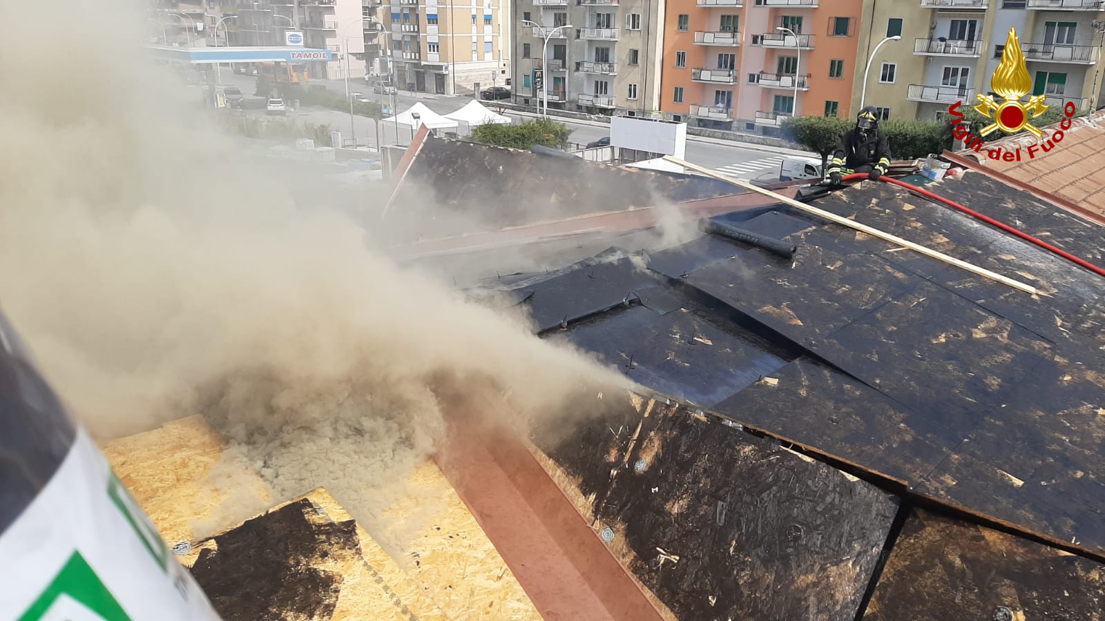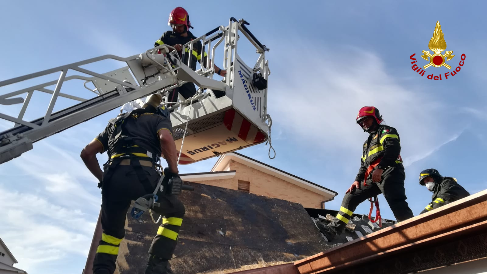 Sul posto sono intervenuti subito i Vigili del fuoco con due mezzi antincendio ed un’autoscala il cui Comando è a qualche centinaio di metri che hanno spento immediatamente le fiamme e bonificato la copertura della casa in ristrutturazione.