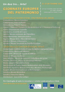 MOLISE – Nel fine settimana del 21-22 settembre 2019 si celebrano le Giornate Europee del Patrimonio (GEP 2019) con tema “Un due tre… Arte! – Cultura e intrattenimento”.