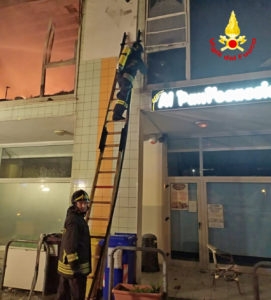 Secondo quanto appreso, le fiamme, hanno dapprima interessato un’attività di abbigliamento sportivo e da lavoro distruggendo tutta la merce e provocando diversi danni, per poi coinvolgere un’attigua palestra e un appartamento al primo piano, e un negozio di ricambi auto ed un panificio al piano terra.