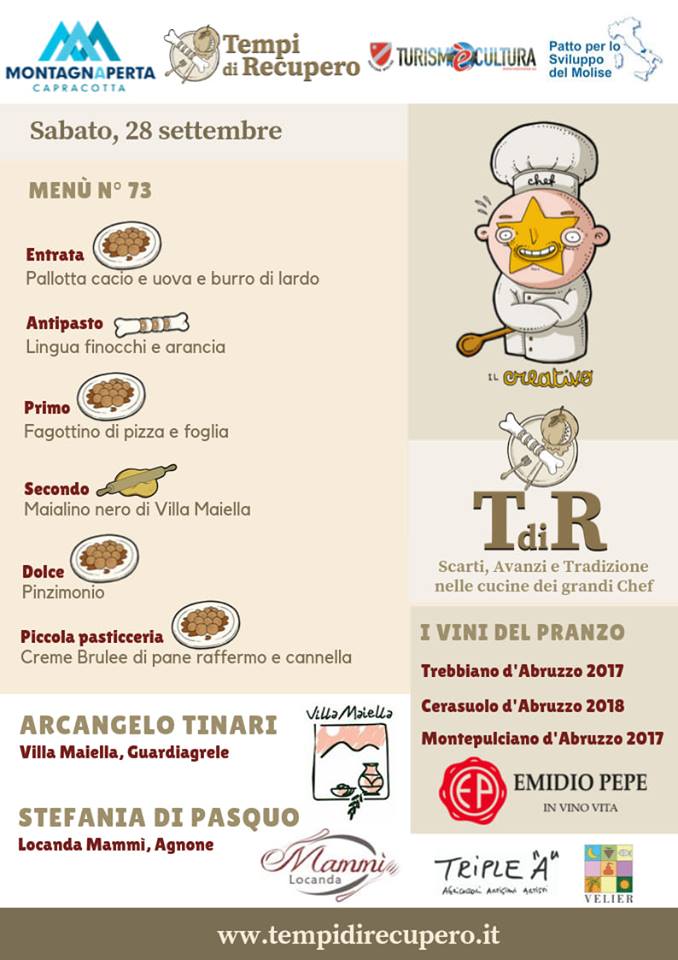 Il menù davvero particolare sarà completato dai vini della cantina Emidio Pepe, il ricavato del pranzo sarà totalmente devoluto in beneficenza.