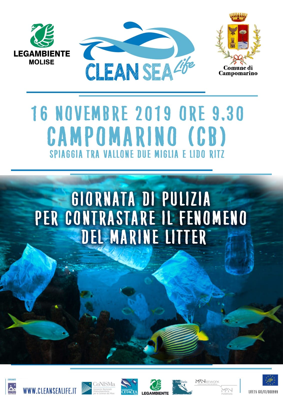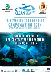 CAMPOBASSO – Si chiama Clean Sea Life il progetto europeo di cui Legamabiente è partner che si propone di accrescere l’attenzione del pubblico sui rifiuti marini. E nell’ ambito di questo progetto si colloca l’iniziativa di ripulitura del litorale a Campomarino compreso tra Vallone Due Miglia e Lido Ritz  organizzata da Legambiente e dall’Amministrazione locale.