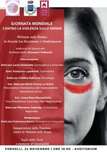 FORNELLI – L’Amministrazione Comunale di Fornelli in collaborazione con l’Associazione Liberaluna Onlus celebrerà a dovere la Giornata Internazionale contro la violenza sulle donne. L’Appuntamento è fissato per domenica 24 novembre alle ore 16 presso la struttura del Mini-Auditorium Comunale.