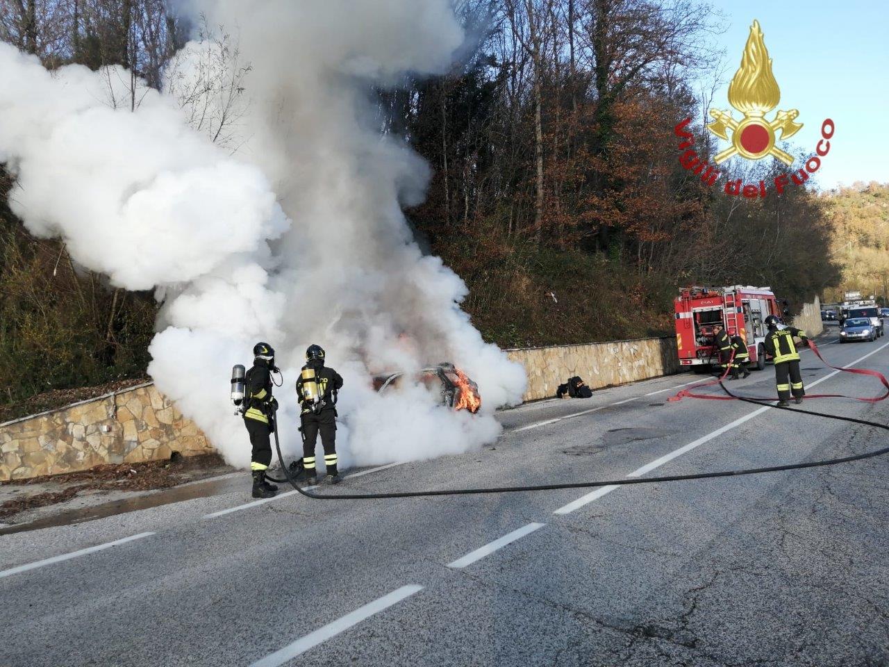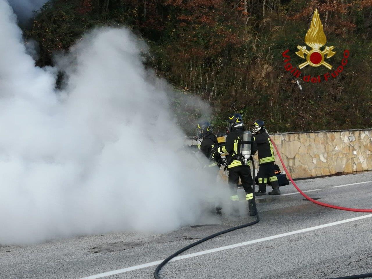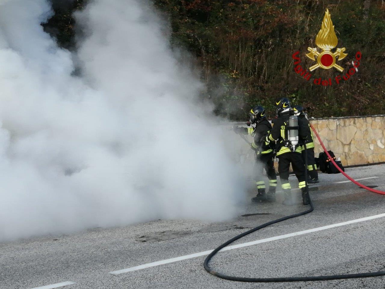 Necessario l’intervento dei Vigili del Fuoco del Comando Prov.le di Isernia per lo spegnimento. Sul posto anche i Carabinieri per i rilievi del caso e personale ANAS per il ripristino della viabilità.