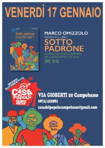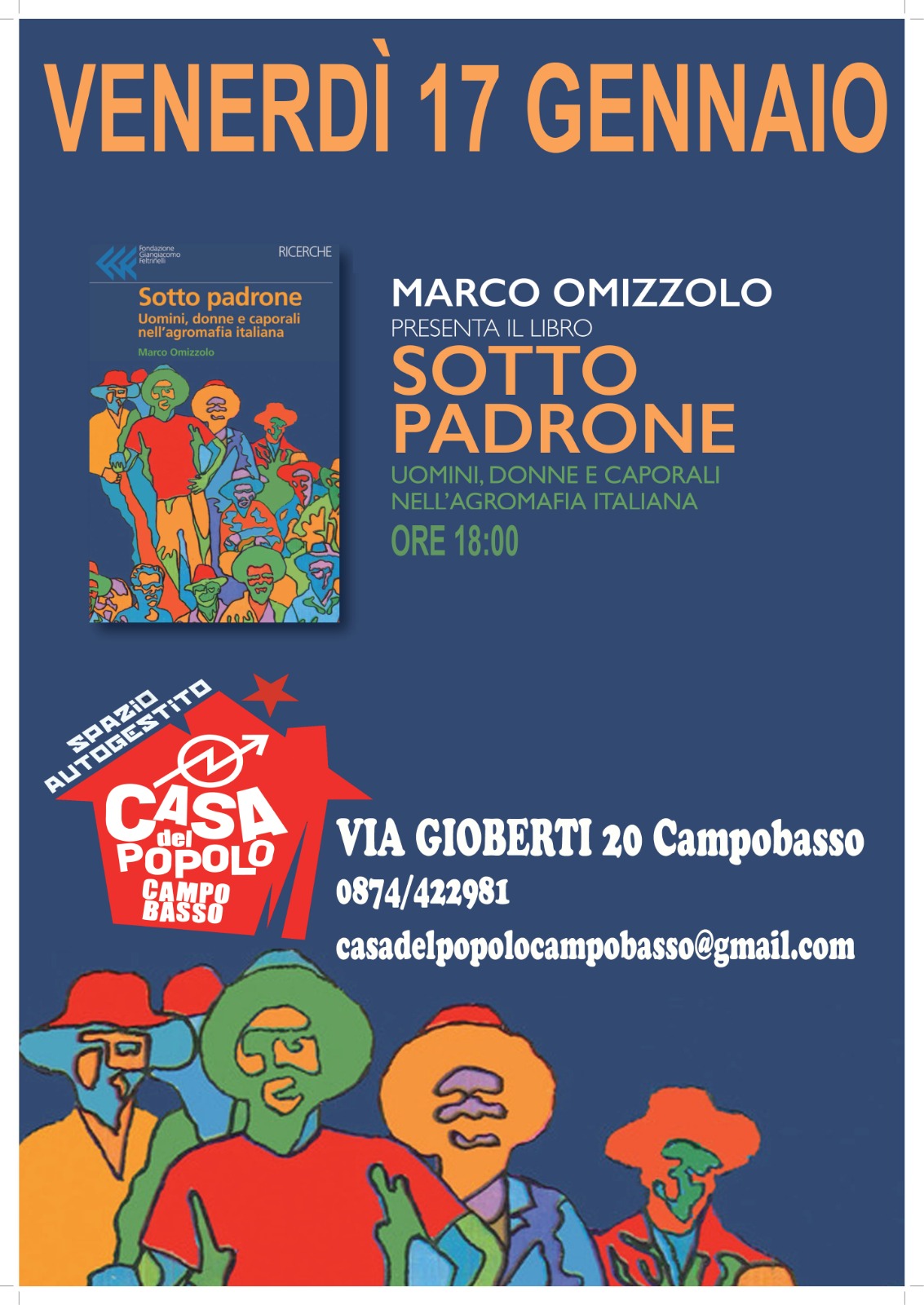 EVENTI – Venerdì 17 gennaio alle ore 18:00 a Casa del Popolo in via Gioberti, 20 a Campobasso, presentazione del libro “Sotto Padrone” di Marco Omizzolo.