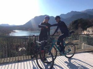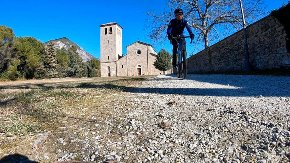 Lungo il tragitto ha incrociato anche la ciclista campionessa di categoria del gran fondo di Castel di Sangro Manuela De Iuliis in allenamento lungo la salita che porta al lago.