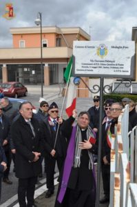 Per l’occasione, questa mattina, il Questore Roberto Pellicone ed il Sindaco Giacomo D’Apollonio hanno scoperto una targa toponomastica intitolata a Palatucci, posizionata all’ingresso della via omonima che dalla SS 17 conduce alla Questura.
