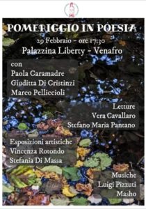 VENAFRO – Nel giorno che forse esiste, il 29 febbraio, l’associazione venafrana Venus propone presso la Palazzina Liberty un inedito Pomeriggio in Poesia, un’occasione per scoprire la poetica e la visione del mondo di Paola Caramadre, Marco Pelliccioli e Giuditta Di Cristinzi attraverso i versi delle loro ultime pregevoli pubblicazioni.