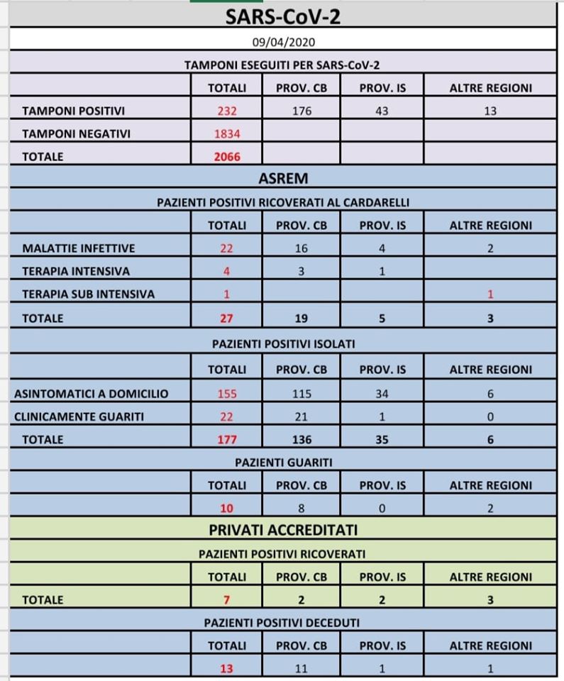 CAMPOBASSO – L’Asrem ha diramato il bollettino dei contagi della mattinata di giovedì 9 aprile.