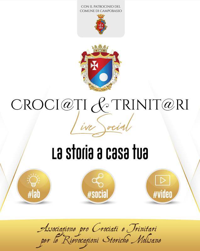 - #Dirette – Cultura in streaming: In questo momento di fragilità per la cultura, a causa dei numerosi rinvii di eventi, l’Associazione pro Crociati e Trinitari decide di entrare con la sua storia nelle case di tutti, proponendo delle dirette che avranno luogo ogni Mercoledì sera sulla pagina Facebook dell’Associazione. Negli incontri interverranno differenti studiosi, relatori e cultori della storia rinascimentale e campobassana, si alterneranno per fornire nozioni ed informazioni su un’epoca sconosciuta nella nostra città ma sempre ricca di splendore e fascino.
