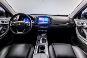 Nella grande plancia, dalle linee pulite ed essenziali, spicca il touch da 9 pollici attraverso il quale si gestisce il sistema infotainment di ultima generazione con connettività smartphone (Apple CarPlay ed Android mirror screen). Il quadro strumenti, LCD da 7 pollici, prevede la possibilità di scegliere tra tre temi/cromie (Dynamic, Fantasy, Passionate). Accensione e spegnimento del motore con il tasto Start/Stop, keyless, 4 telecamere con visione a 360° (solo sull’automatica), park assist con 8 sensori di parcheggio e telecamera posteriore, interni in ecopelle, sedili anteriori riscaldabili (solo sull’automatica), clima e tetto panoramico, con apertura parziale, di ben 92 cm, completano la ricchissima dotazione di serie.