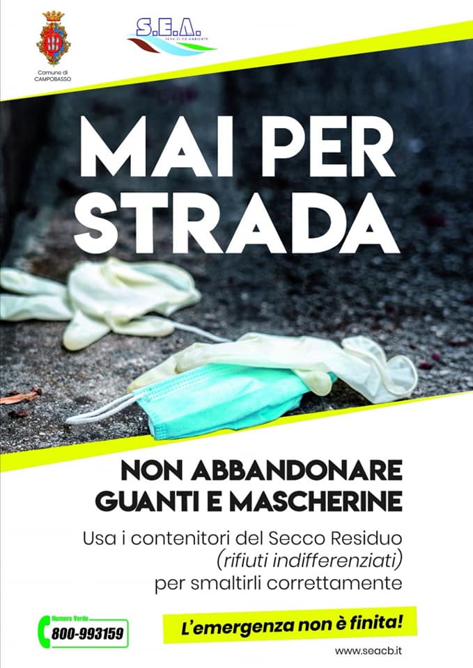 “Per dare ulteriore efficacia al messaggio di sensibilizzazione, – ha annunciato Cretella – sarà lanciata anche una campagna di affissioni per ricordarci che l’emergenza non è finita e che guanti e mascherine, caso mai ci fosse ancora bisogno di ribadirlo, non vanno assolutamente gettati a terra.”