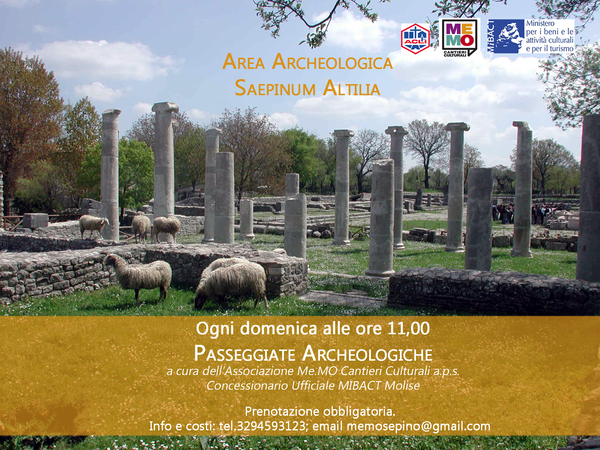 SEPINO – Dal prossimo 12 luglio, ogni domenica alle ore 11,00, riprendono le consuete Passeggiate Archeologiche all’interno dell’area archeologica di Saepinum Altilia, in compagnia dei professionisti dei Beni Culturali dell’Associazione MeMO Cantieri Culturali.