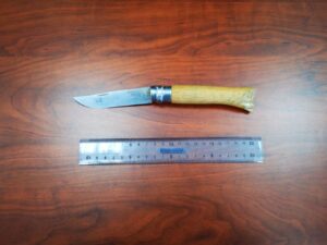 Nel corso della perquisizione veicolare e personale effettuata veniva rinvenuto, all’interno di un vano portaoggetti del mezzo, un coltello a serramanico della lunghezza complessiva di 23 centimetri e lama di 11 centimetri, di cui l’uomo non sapeva giustificare il porto.
