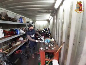 Tutta l’attrezzatura era tenuta all’interno di un container, mentre l’attività di riparazione veniva svolta direttamente nel piazzale situato sul retro della rivendita.