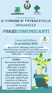 PIETRACATELLA – Per celebrare la Festa dell’Albero il Comune di Pietracatella e il Circolo Legambiente “Fortore-Occhito” lanciano l’iniziativa dei #VasiComunicanti.