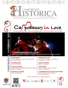 Campobasso in Love 2021 rientra nel progetto “Campobasso Historica, il Rinascimento”, finalizzato a sensibilizzare e diffondere la cultura e la storia Rinascimentale molisana. Il progetto è promosso e sostenuto dalla Regione Molise, attraverso l’avviso Turismo è Cultura 2020 del Patto per lo Sviluppo del Molise, in partenariato con il Comune di Campobasso, la Camera di Commercio del Molise e la Confcommercio Molise.