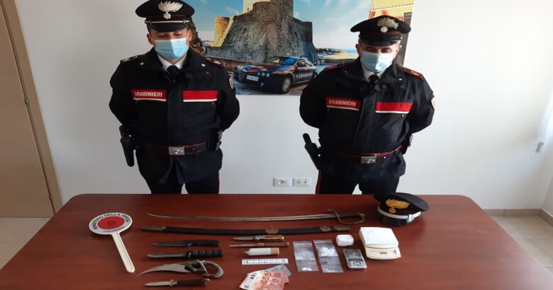 Nell’ambito del medesimo contesto operativo, i militari rinvenivano inoltre, sempre all’interno della stessa abitazione, 2 coltelli a scatto, 1 coltello a farfalla e 3 coltelli fissi, con lame di lunghezze comprese tra 7,50 e 17,00 centimetri, nonché 1 sciabola lunga 96,00 centimetri con lama di 83,00 centimetri e 1 petardo di medie dimensioni.