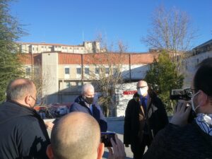 Il governatore Toma e il dg Asrem Florenzano si sono recati, questo pomeriggio, presso il presidio ospedaliero “Cardarelli” di Campobasso per la consegna della struttura modulare realizzata nelle adiacenze del preesistente manufatto, ad esso collegata e che, dunque, può essere utilizzata anche come “area grigia” o per altre emergenze. Qui hanno incontrato i mezzi d’informazione locali nel corso di una conferenza stampa.Intanto, a partire da oggi, sono stati inviati in Molise un ufficiale medico e due sottoufficiali infermieri, che vanno ad aggiungersi ai cinque ufficiali medici già operanti sul territorio per la campagna vaccinale.