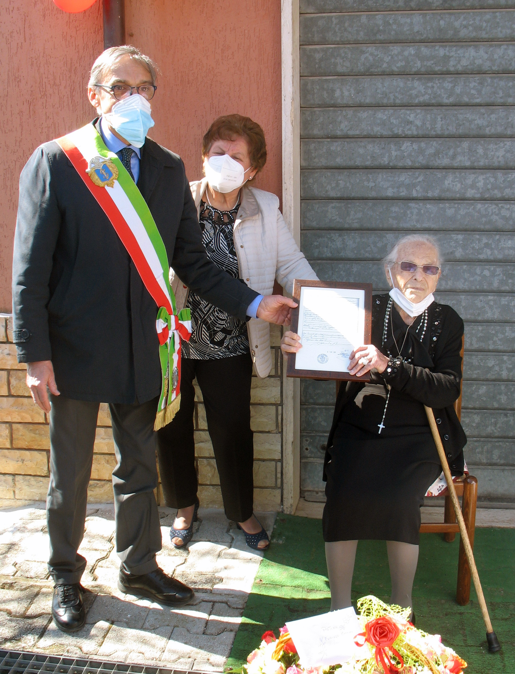 Il Sindaco, inoltre, ha donato alla nuova centenaria una graziosa targa-ricordo e una copia del suo atto di nascita, accuratamente incorniciato.