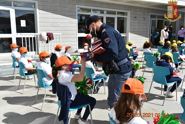 Per la nostra provincia, la distribuzione delle agende scolastiche destinate a tutti i circa 600 alunni delle classi 3e (future 4e) delle Scuole Primarie inizierà oggi dagli Istituti Comprensivi “San Giovanni Bosco” e “Giovanni XXIII” di Isernia, alla presenza del sig. Prefetto dott.ssa Gabriella Faramondi e della dott.ssa Agata Antonelli dell’Ufficio Scolastico Regionale. I dirigenti scolastici Giuseppe Posillico e Bruno Caccioppoli, con i docenti e gli alunni hanno accolto i poliziotti con entusiasmo, regalando momenti di grande intensità attraverso poesie, disegni e domande curiose poste dai bambini.