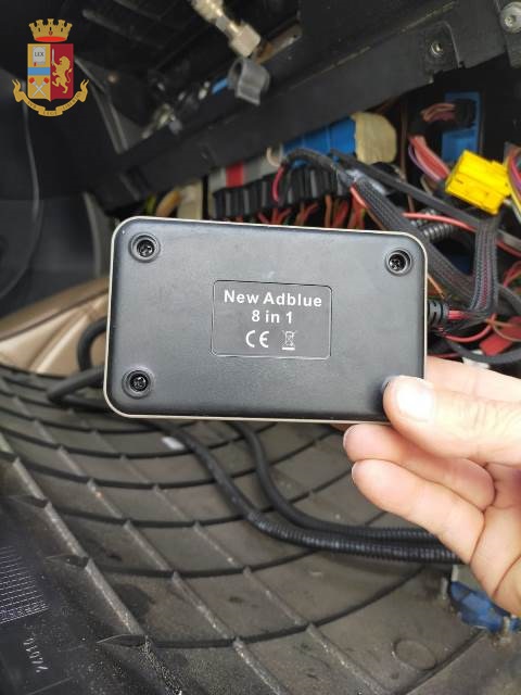 Durante il servizio è stato accertato dagli agenti che un autoarticolato, di proprietà di una società campana, circolava con il dispositivo antinquinamento basato sull’additivo AdBlue manomesso ed in particolare, ispezionandolo, si è accertato che era stata installata una sofisticata centralina elettronica che ha consentito di circolare senza consumare l’additivo indispensabile all’abbattimento delle emissioni inquinanti, obbligatorio per i veicoli rispondenti alla direttiva europea EURO 6.