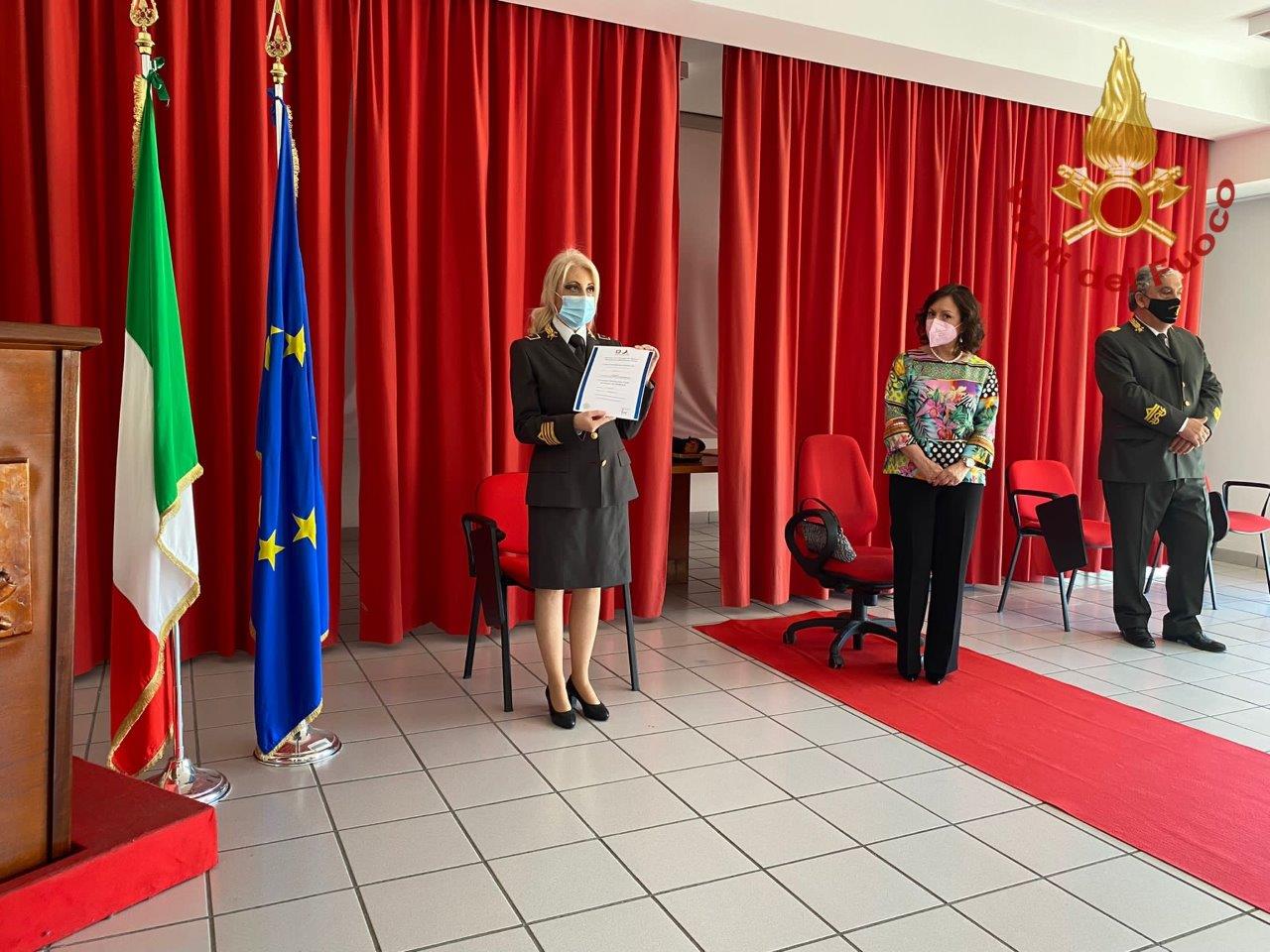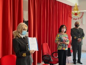Sempre nella giornata odierna, si è tenuta la cerimonia anche ad Isernia, con la partecipazione di S.E. il Prefetto di Isernia, Dott.ssa Gabriella Faramondi, accolta dal Comandante Provinciale, ing. Raffaella Pezzimenti e dal Direttore Regionale dei Vigili del fuoco del Soccorso Pubblico e della Difesa Civile del Molise, ing. Vincenzo Ciani. Presente alla cerimonia la Dott.ssa Maria Rosalba Manzo, delegata dal Dipartimento dei Vigili del Fuoco del Soccorso Pubblico e della Difesa Civile. La cerimonia si è svolta in modo ristretto, in linea con le prescrizioni imposte dall’attuale situazione sanitaria nazionale. Il Comandante provinciale, nella sua breve allocuzione, ha richiamato le motivazioni della benemerenza concessa al Comando, a titolo collettivo, per l’emergenza neve di gennaio 2017 e simbolicamente ha voluto consegnare, a sua volta, l’Attestato al personale operativo intervenuto in rappresentanza dei turni di servizio. Parole di stima sono state rivolte dal Prefetto e dal Direttore Regionale.